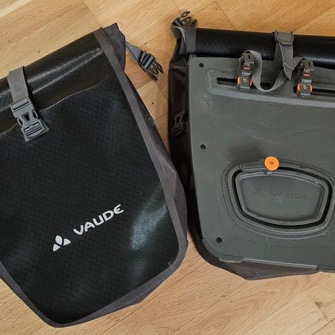 VAUDE Aqua Back 24L x 2st vattentäta cykelväskor för pakethållare.