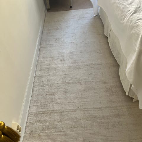 &Tradition matta med randigt mönster. Mattan har en ljus bottenfärg med mörkare ränder i ett linjärt rutmönster. Ovansidan består av en blandning av ull och bomull, vilket ger en mjuk men samtidigt slitstark yta som passar i exempelvis vardagsrum eller sovrum. Undersidan är vävd för stabilitet. Mattan är avsedd för inomhusbruk och kan kombineras med halkskydd vid behov.