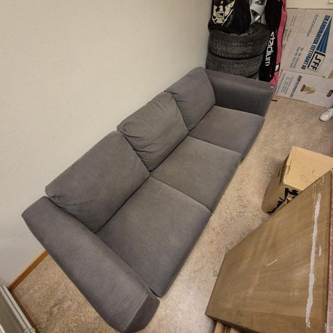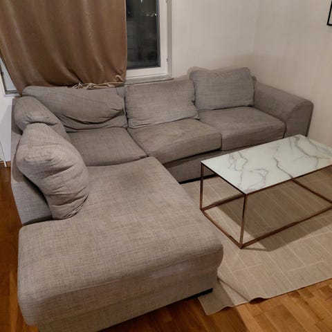 Nytt soffa utan skador, tillsammans med soffbordet