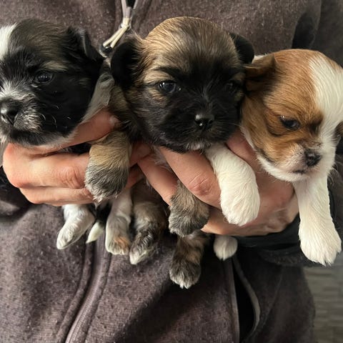 Vi är en flicka (flerfärgad) och en pojke (vit) som är blandras mellan Shih Tzu/Bichon, och som föddes den 6 mars.