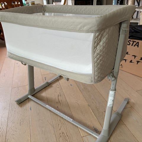 Bedside crib från Yngri inklusive en BabyDan madrass.