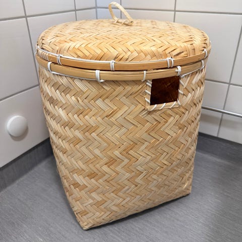 Tvättkorg med lock flätad naturmaterial