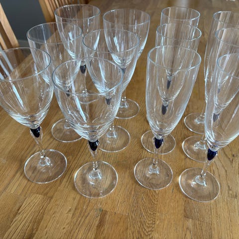 8 höga tunna vinglas på blå fot