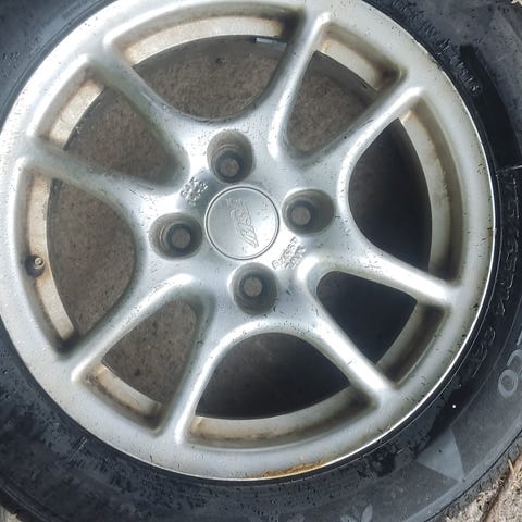 Sommar däck med fälg suttit på Suzuki Grand Vitara 2005 år/m. 225-55- R16 . Lite tårspricka.