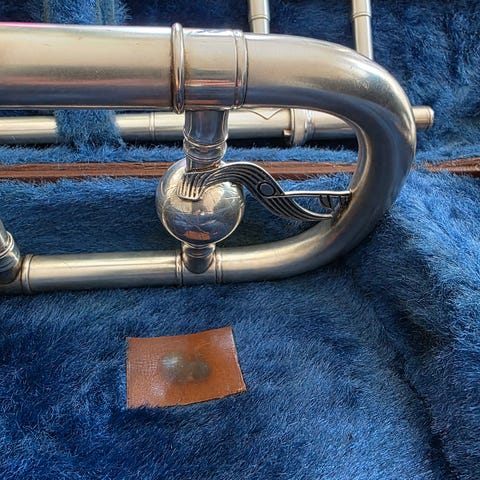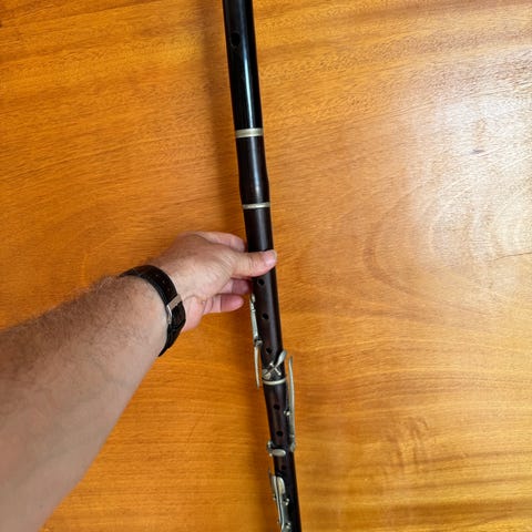 Tvärflöjt i metall, silverfärgad. Märke Gemeinhardt M2. Flöjten har slutna klaffar och levereras i hårt etui med blå sammetsinredning. Passar för spel i orkester, ensemble eller individuellt bruk