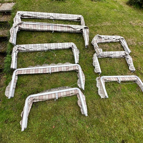 Baklucka i vit färg, Ford Mustang 60-tal. Varit rostig i nederkant och därav lite kapad.