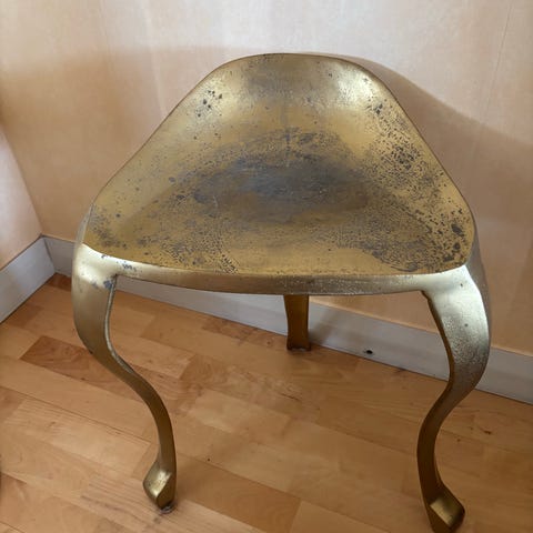 En pall i metall köpt från Mio för flera år sedan. Väldigt repig sits samt skavanker runtom. Höjd: 45 cm.