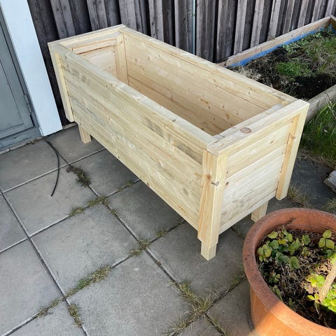 Svart planteringslåda för utomhusbruk i metall. Lådan är fristående och passar för plantering av blommor, växter eller mindre buskar på altan, balkong eller i trädgård. Öppen ovansida för enkel plantering och skötsel. Stabil konstruktion som kan placeras direkt på trall eller annan hård yta.