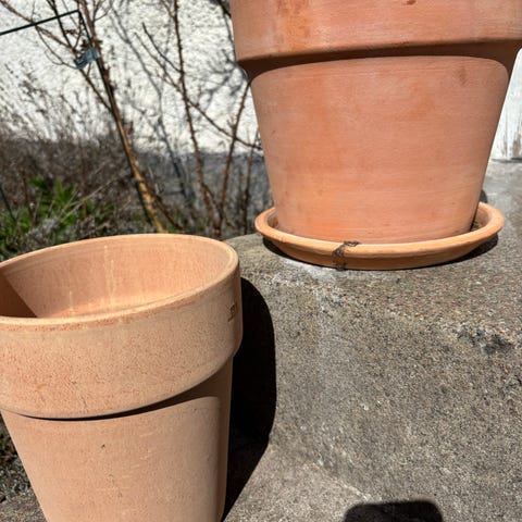 Terrakotta krukor säljes. Ca 10 cm i diameter. 10 kr st. En kartong finns.