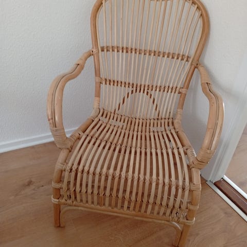Fåtölj i rotting i naturfärg. Stolen har svängd form med integrerade armstöd och sits och rygg i ribbad rotting. Passar som sittmöbel i vardagsrum, uterum eller liknande inomhusmiljöer.