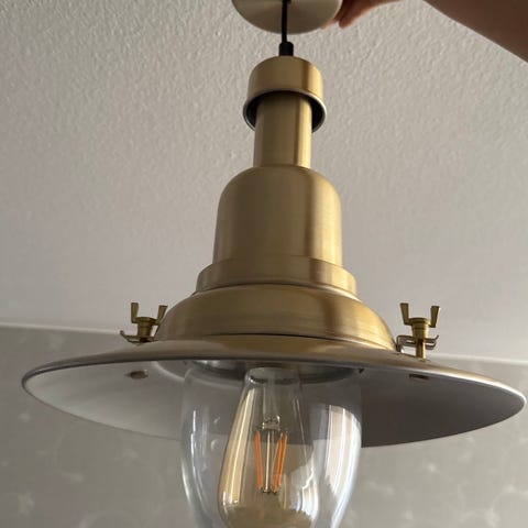 Säljer en snygg och rejäl taklampa i industristil. Stor modell i svart metall som ger ett riktigt fint ljus över matbord eller köksö.