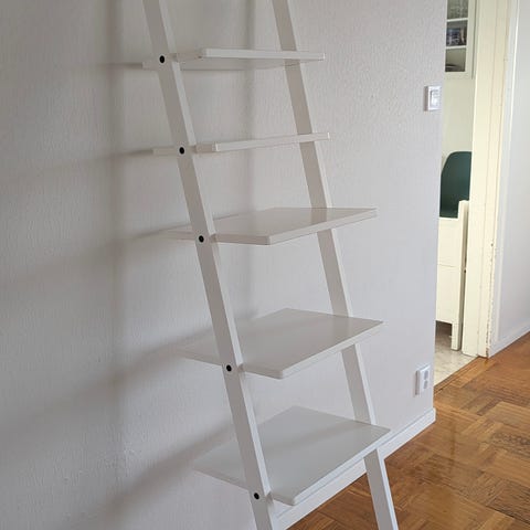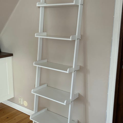 Vit trappstegshylla. Fint skick, men med en del synligt färgslitage.