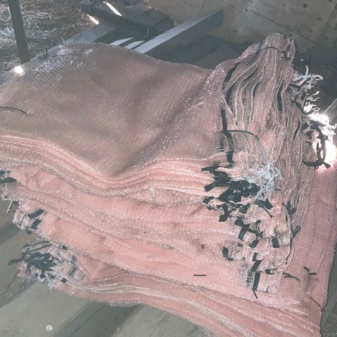 Tom vedsäck 1,5 kubik. Öppningsbar botten. Lyftöglor i hörnen.