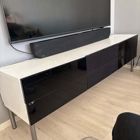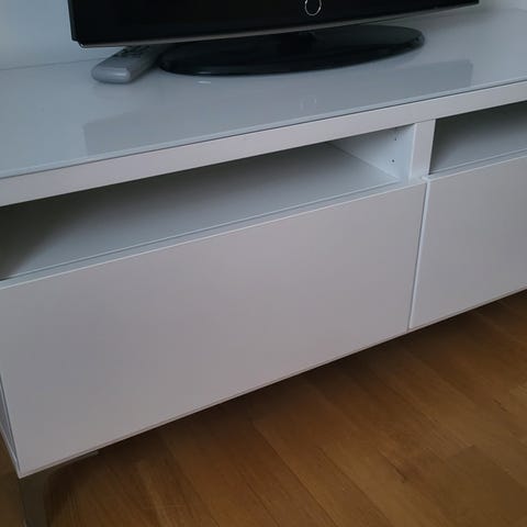 TV-bänk. Tidigare vägghängd. Bra skick men vi har haft lite svårt att få på lådorna helt perfekt efter flytt.