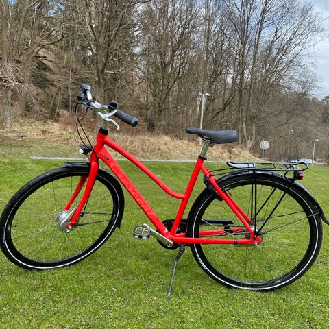 Specialized damcykel med 28” hjul i vit med grå detaljer. Utrustad med Shimano Nexus navväxel (1-8), pakethållare bak (25kg), fot- och handbroms samt raka styren. Passar som vardags- och pendlarcykel för ungdom eller mindre vuxen. Ram i aluminium med standard sadel, framlampa och reflexer på hjul och pedaler.