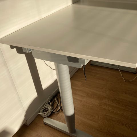 Säljer ett elektriskt höj och sänkbart skrivbord, det är i bra skick, men har använts mycket och har därmed några repor (se bilder). Förvarings skåpet under skrivbordet går att rulla, och medföljer i priset (kan även köpas utan skåpet om man vill). Manual för skrivbordet medföljer.