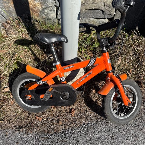 Logan barncykel, lite sliten men däcken är i bra skick.