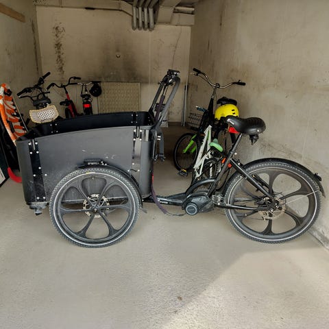 Lådcykel el från Amladcyklar säljes. Cykeln har en större lastlåda framtill med bänk och säkerhetsbälten, samt en låsbar låda under sittbänken. Elsystemet har display vid styret för att visa inställningar för bl.a. assistans nivå och batterinivå. Batteriet är placerat på pakethållaren bak. Utrustad med ringklocka. Batteriet är precis nyinköpt och bara laddad en gång. Säljes i befintlig skick.