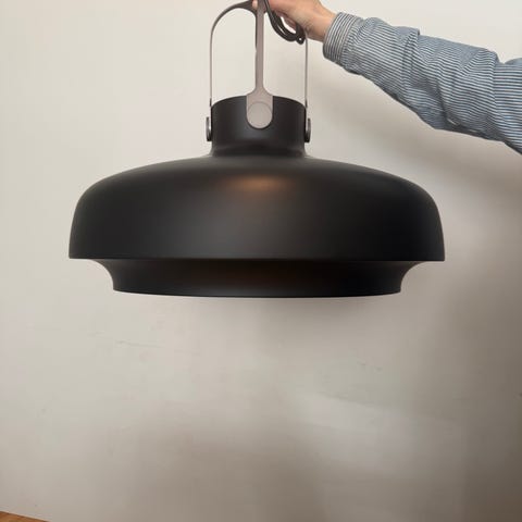 Grön takpendel Curve från Globen lighting, formgivare Patrick Hall. Diameter 50cm, höjd 28cm. Lamphållare 1xE27, kabellängd 120cm, kabelfärg svart. Mycket liten färgskiftning (1cm) på ovansidan av lampan som ej syns när upphängd. Aldrig använd, men saknar originalförpackning. Nypris 2699kr men säljs för 800kr.