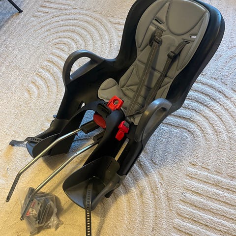 Cykelstol säljes då barnen vuxit ur den. Inklusive fäste för olika storlekar på cykel.