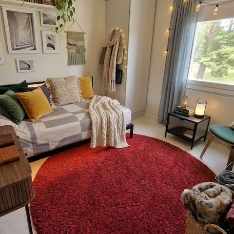 Den här lekfulla mattan med svarta prickar är designad av Ingela Håkansson Lamm, medgrundare av det innovativa svenska designkollektivet 10-gruppen. Ung i sinnet och typiskt skandinavisk.