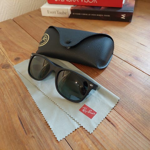 Har ett par klassiska Ray Ban solglasögon utan styrka. Väldigt lite använt för att köpte strax efter samma märke med styrka. Säljer detta par för 600 kr så de slipper ligga i byrålådan. Inga repor!