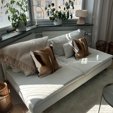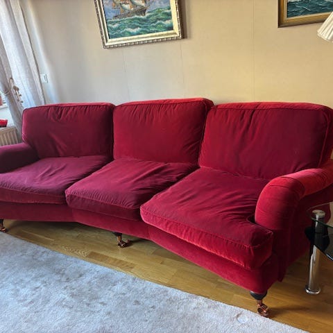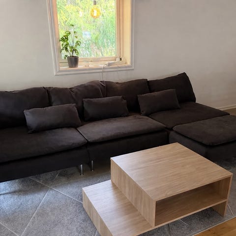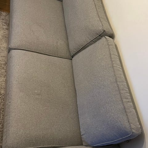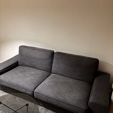 Vi säljer vår fina soffa Söderhamn. Mått framgår av bilden - i jättefint skick. Är nedmonterad och hämtas av köparen. Soffan är djup och skön att sitta i. Passar bra också i mindre utrymmen eftersom designen är så nätt och luftig. Ljusgrå. Tyget kan tas av och tvättas. Nypris med den här klädseln - ca 5000 kr.
