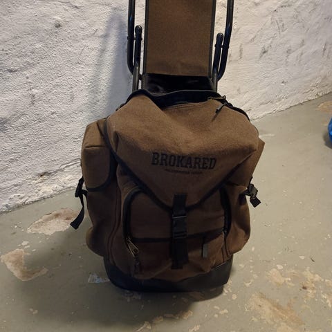 Punkeskus Finland ryggsäck med integrerad stol i grön färg. Ryggsäcken har metallram som fungerar som sittstol samt vadderade axelremmar. Flera ytterfack och dragkedjeförsedda fickor ger plats för packning och utrustning. Passar exempelvis för fiske, jakt, camping eller andra friluftsaktiviteter där både packning och sittplats behövs.