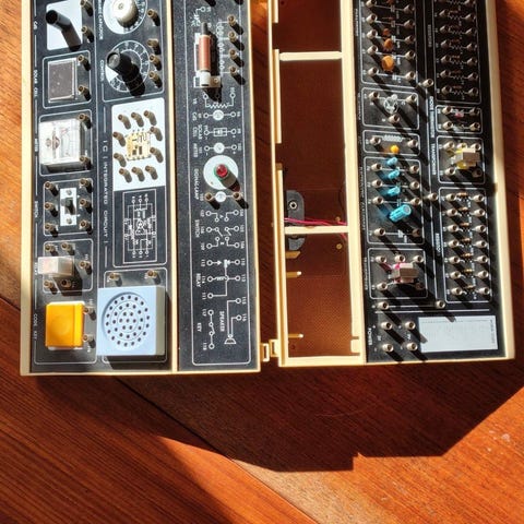 Elektronikkomponentskåp säljes med diverse olika komponenter som motstånd, kondensatorer, transistorer, ic-kretsar, dioder, lysdioder mm. Bra startkit för den som vill hålla på med elektronik.