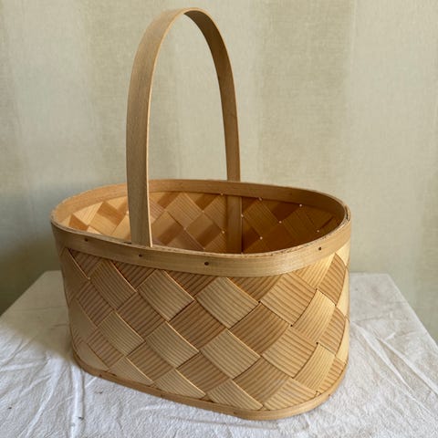 Stor och stabil flätad korg i naturmaterial med handtag.