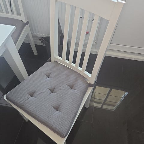 Matsalsbord 180cm (med iläggsskiva 225) höjd 74 bredd 90 stolar höjd 96,5 bredd på sitta max 45,5 , 45 från golv till sits