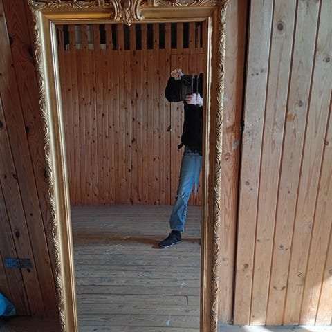 Spegel med bord 115x65 cm. Se baksidan av spegel på andra bilden. Där står information om spegel.