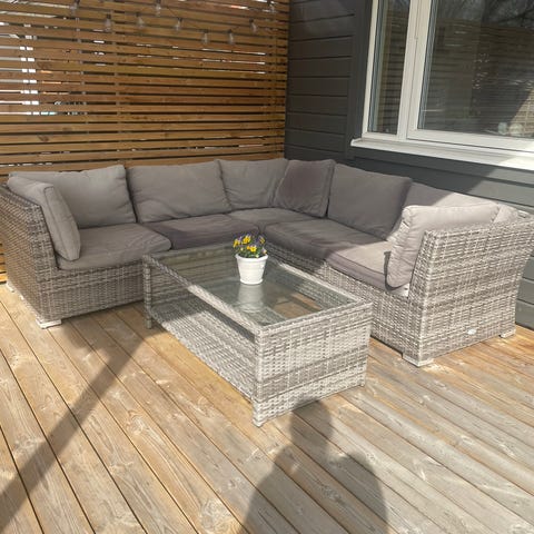 Okänt märke loungeset utemöbler soffa fåtöljer bord konstrotting beige