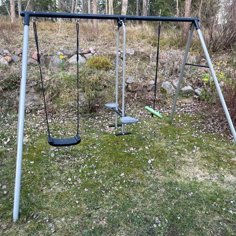 Gungställning med två däckgungor. Finns plats för fler gungor. Tex. En kompisgunga. Kom och hämta 😀 Ni får montera ner den själva.