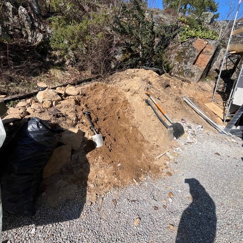 Fyllnadsmassor bestående av jord och en del mindre stenar.