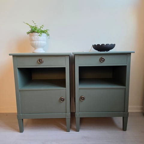 Ett par äldre sängbord med marmorskiva