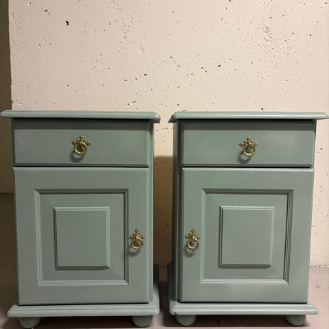 Sängbord par, nattduksbord med marmorskiva. Tillverkade runt sekelskiftet 1800/1900. Om-målad på senare tid. Fint skick, mindre färgslitage (se bild).