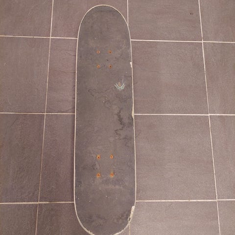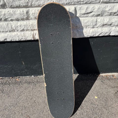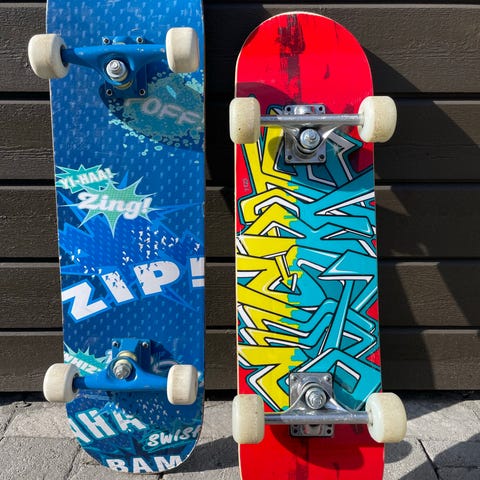 Tony Hawk skateboard med färgstarkt uggle-motiv på undersidan. Brädan har svart griptejp på ovansidan, gula hjul och metalltruckar. Passar för åkning i park, gata eller ramper. Storlek och material är inte angivna på produkten i bilderna.