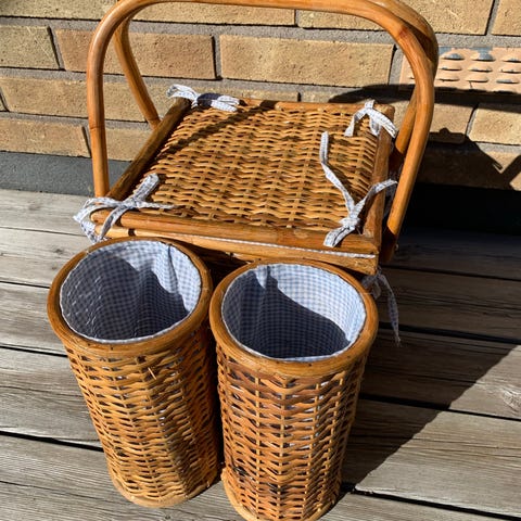 Picknick-korg med bestick i plast. Nästan aldrig använd