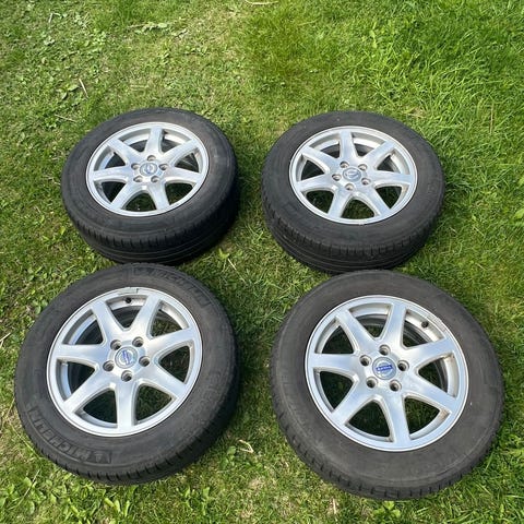 Däck med fälgar i dimensionen 185/65 R15. Satsen består av fyra kompletta hjul med monterade däck på fälgar. Passar fordon som använder denna däckdimension och 15-tums fälgar. Mer information om bultmönster, ET-mått och däckens skick kan kontrolleras vid behov