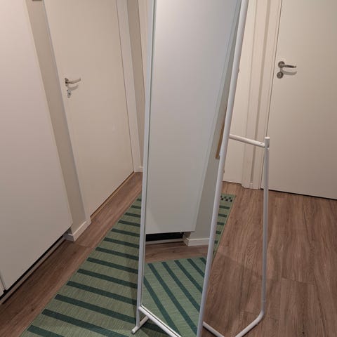 IKEA barnspegel ”Möjlighet” i vit metall bortskänkes. Tror att den inte finns i sortimentet längre. Skålen och mobilhållaren är flyttbara.