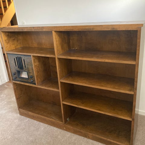 En retro bokhylla, gissar från 60/70-talet.