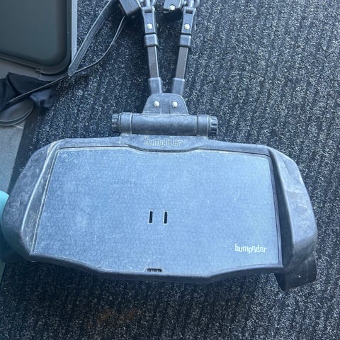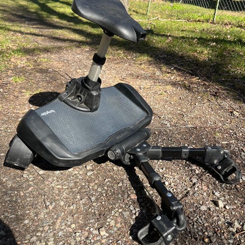 Åkbräda från bumprider. Universalmodell med avtagbar sits. I bra skick med fina hjul. Saknas fästen att sätta i vagnen, de går att köpa till.