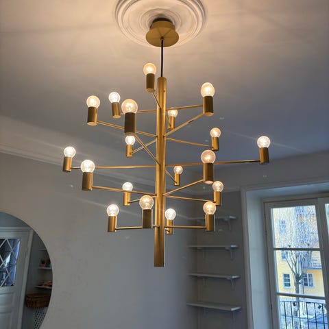 Taklampa i mässing från Manola Herstal med 12 lampor i original.