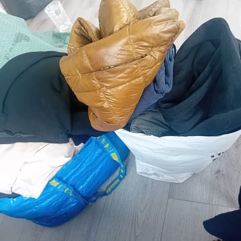 Ytterkläder, storlek L-XXL ca. Finns flera olika jackor och även lite termobyxor. 300 kr/st. Kom gärna och titta.