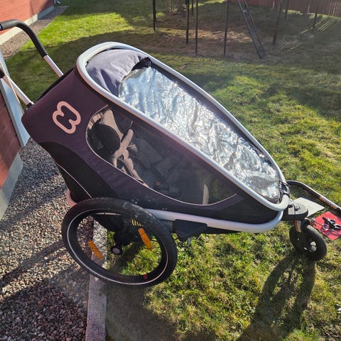 Hamax Outback cykelvagn barnvagn grå röd