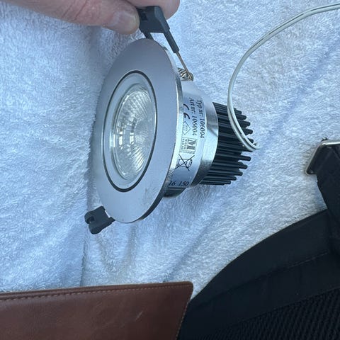 Infälld downlight för 230V, dimmar till varmt ljus. Köpta 2024.