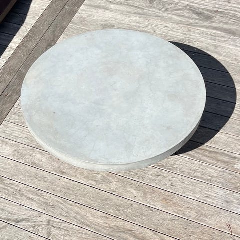Lampan är vit och står direkt på marken, lämplig för placering i trädgård, på altan eller uteplats. Passar som dekorativ belysning. 50 cm i dia. Fint skick. Nypris 499kr.