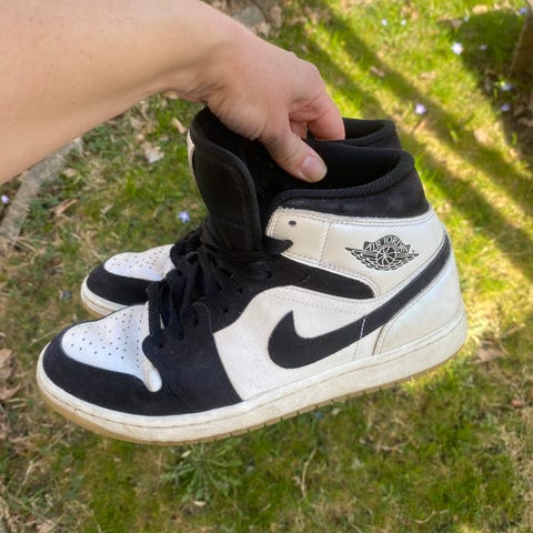 Väl använda med både repor, veck och lite smuts, men inget trasigt och inga hål i fodret i hälkappa eller tår. Knappt något slitage på sulorna heller.