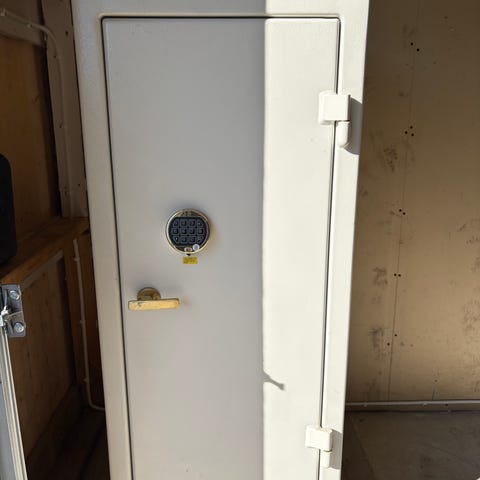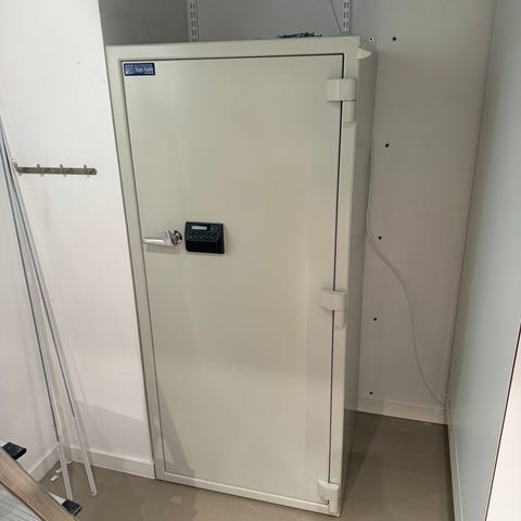 Rosengrens Eurocitizen LW värdeskåp i vit färg. Skåpet är tillverkat av stål och har en kraftig dörr med två vred/handtag på utsidan. Invändigt finns ett mindre innerfack med separat dörr samt ett större fack under för förvaring av dokument, kontanter eller andra värdesaker.